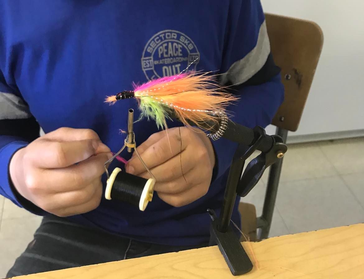 Nous animons une présentation sur la pêche à la mouche et nous apportons tout le matériel nécessaire afin que chaque élève puisse créer une ou plusieurs mouches pour la pêche.