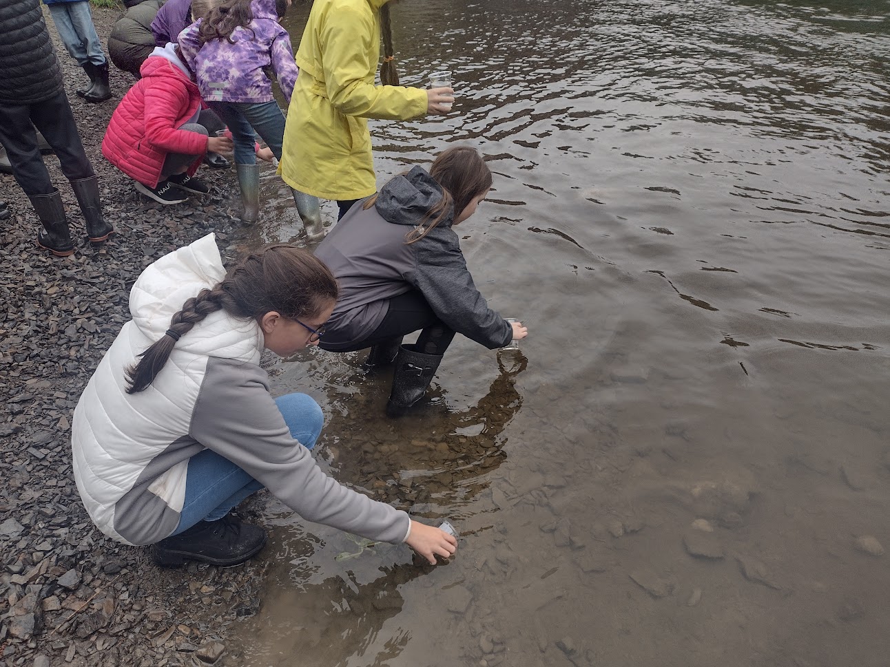 Nous organisons une sortie pour relâcher les poissons à la rivière et nous animons une activité sur les différents paramètres pour mesurer la qualité de l'eau d'une rivière.