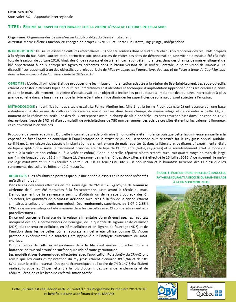 Résumé du rapport : vitrine d'essai de cultures intercalaires