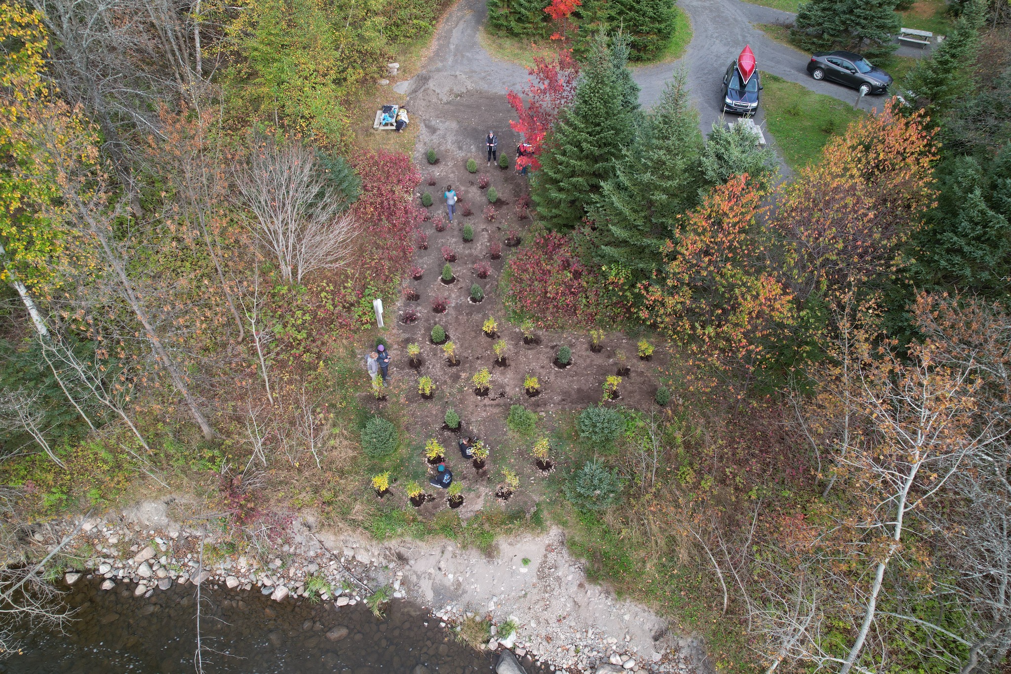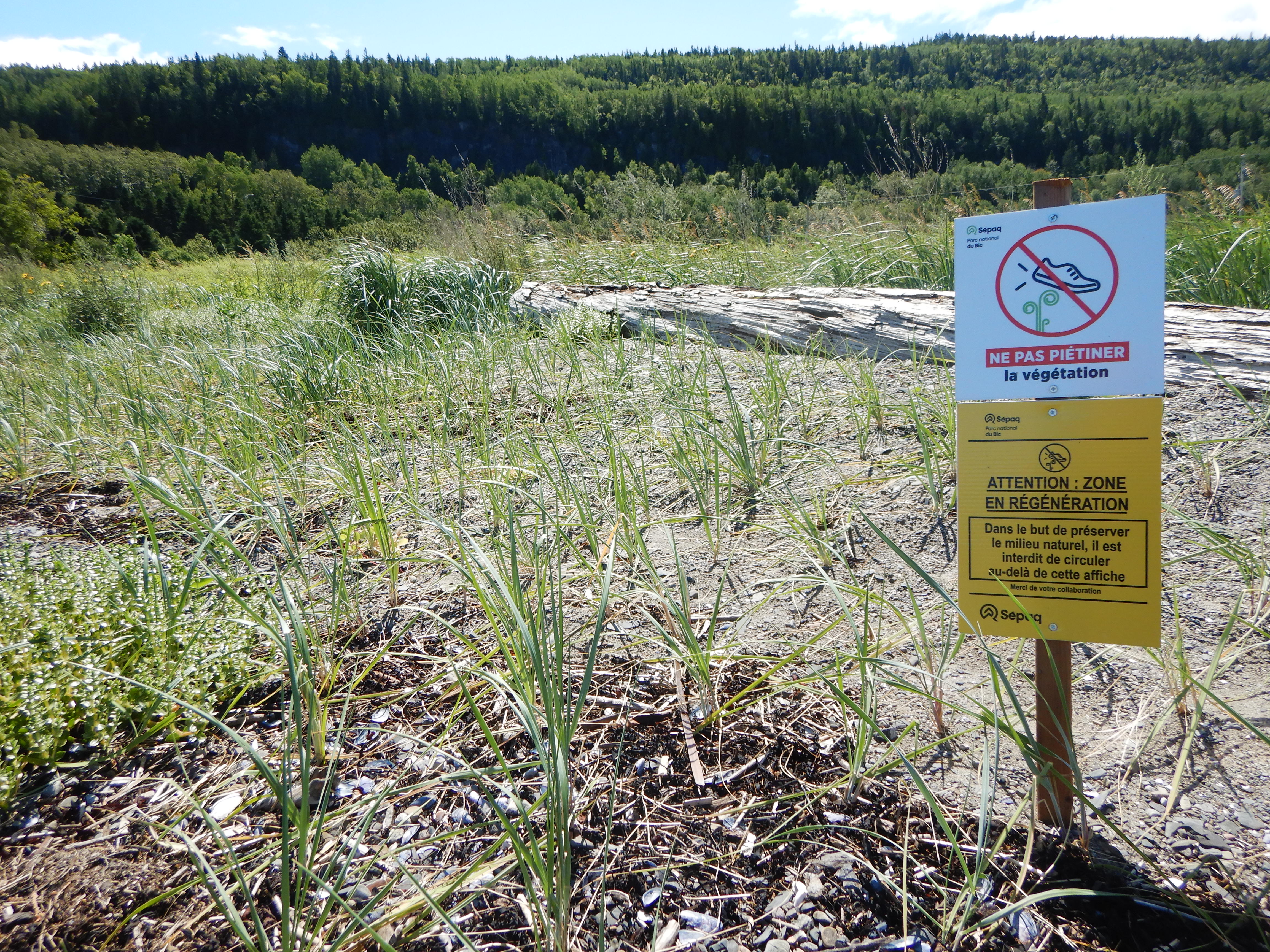 Dans le parc national du Bic, une zone de restauration a été réalisée à l’embouchure de la rivière du Sud-Ouest. Des végétaux indigènes ont été plantés sur une superficie de 648m2 et les accès à trois sentiers ont été fermés.
