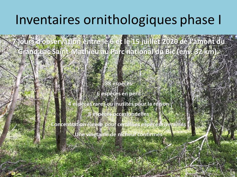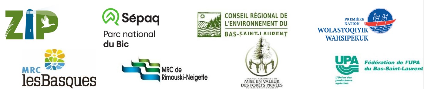 ● Restauration d’habitats riverains (aménagements de bandes riveraines) aux lacs de Saint-Mathieu et dans le secteur du camping de la rivière Sud-Ouest dans le Parc National du Bic;