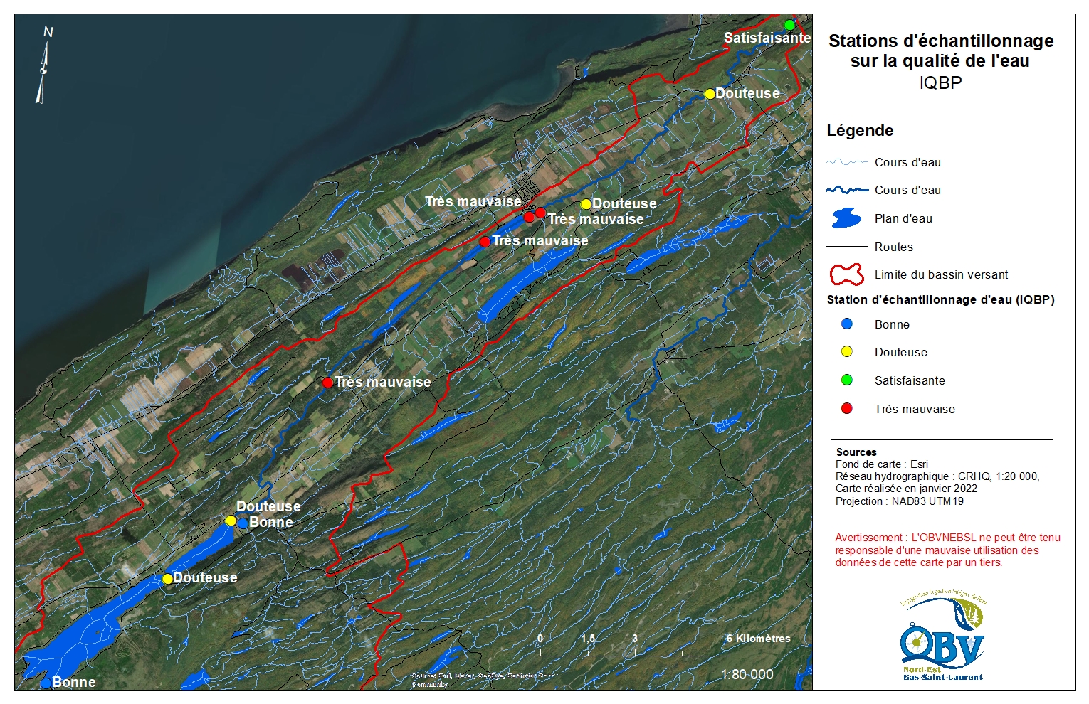 Campagne d’échantillonnage de la qualité de l’eau dans le BV de la rivière Sud-Ouest : échantillonnage de mai à octobre et en temps de pluie de 11 stations réparties de l'amont vers l'aval